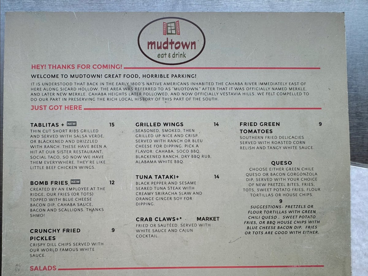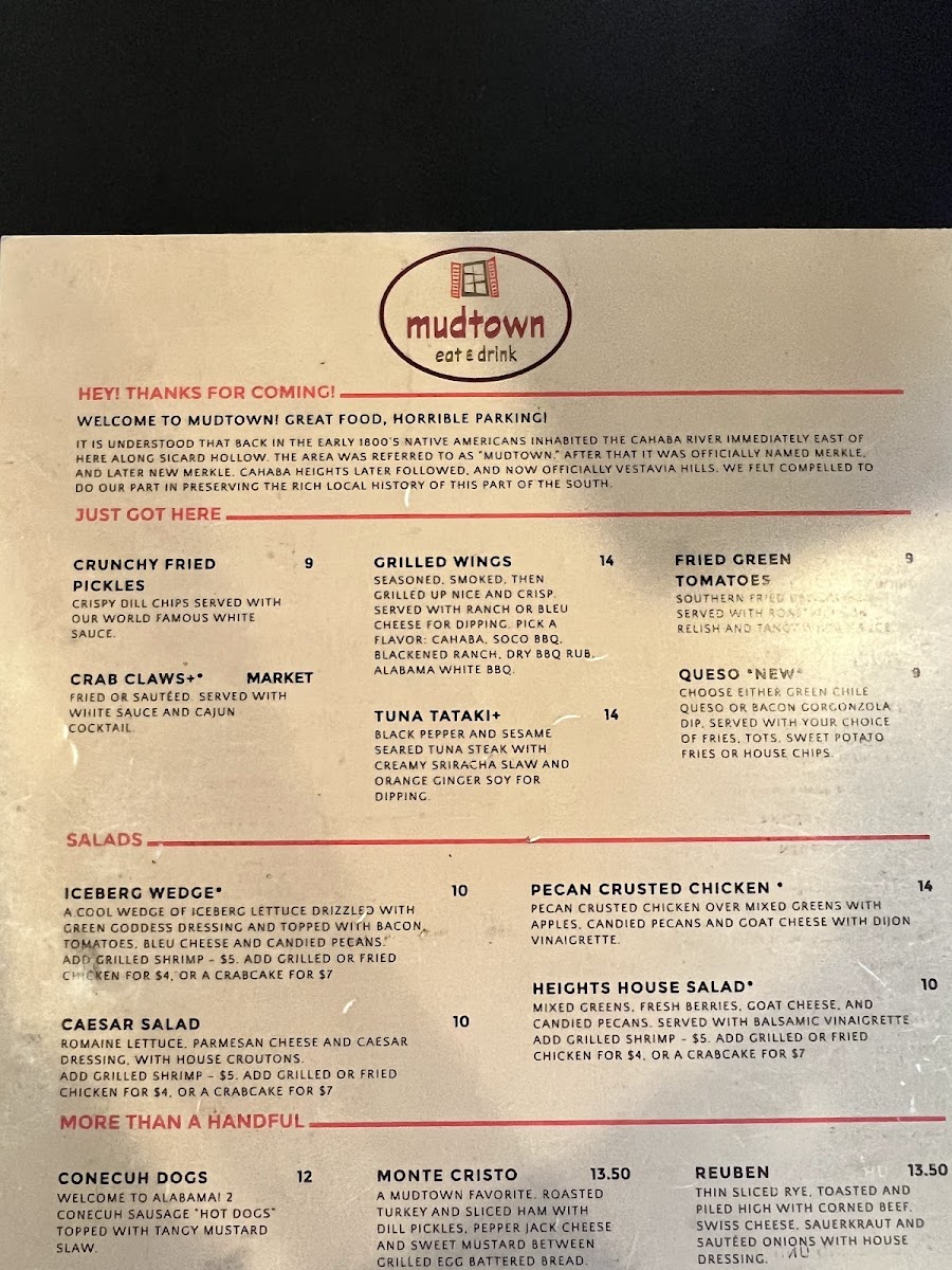 The menu at Mudtown Eat & Drink offers a thoughtfully crafted blend of Southern comfort and classic American flavors, served in a relaxed, welcoming atmosphere. Whether you're stopping by for a casual brunch, grabbing a hearty lunch, or settling in for a laid-back dinner with friends, the selections feel approachable and satisfying without being complicated.